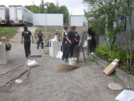 当日は真夏の天気の中、スタッフ総勢、60余名で、事務所の掃除や駐車場の草刈り、整地を行いました。