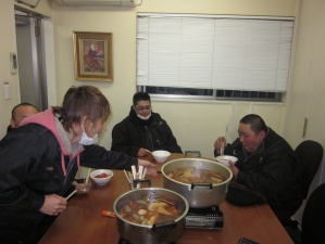 去る、2月25日に、運転手さんへの労いをこめて、帰庫後、おでんの振る舞いを行いました。寒空の中、業務を終えた運転手さんたちは、大量に用意したおでんに舌鼓をうっていました。大きな鍋、約5杯分用意したおでんは、みるみるうちに減っていき、見事完売!みんなの食べっぷりには驚かされました。ほんのひと時ではありましたが、優雅に過ごせたのではないでしょうか?