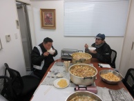お雑煮、おしるこ、うどんを事務員の方に朝から準備をしていただき