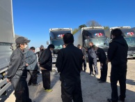 弊社では、入社1年未満の社員にチェーン装着の実習の講習をしています。先輩に講師をしてもらい、手本を参考に装着を実際にやってもらいます。