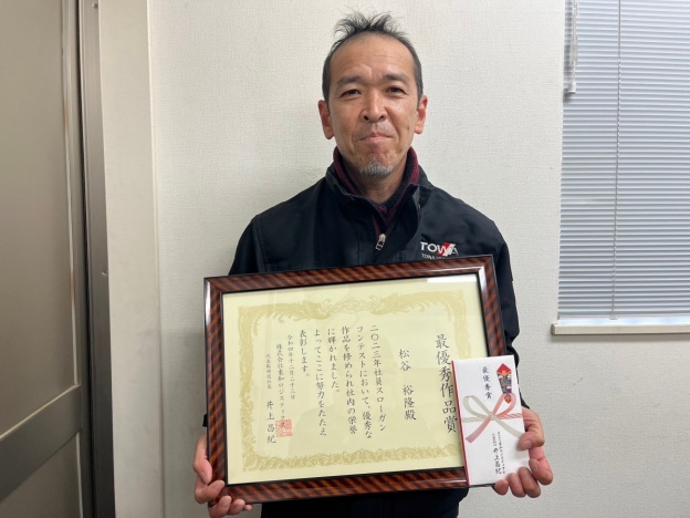 尚、社員スローガンにおいては、毎年、全社員から作品を募り、投票の結果、選ばれたスローガンです。本年は、96名エントリー、延べ108作品の中の最優秀作品です。