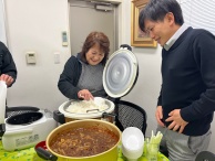 今までない、大盛況、大盛況、米5升5合、肉7K、140人前、皆さん1杯で終わる方はほんの一部